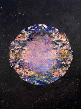 No puedo olvidarte 1986-2025 / 2025 / Acrílico, polvo dorado e iriodin sobre tela / 200 x 150 cm