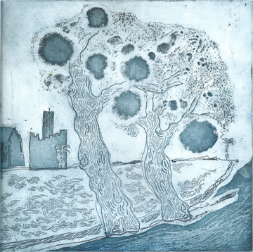 Grabado electrolítico sobre plancha de cobre. 20 x 20 cm. Líneas y electrotinta sobre barniz de tinta de grafito.