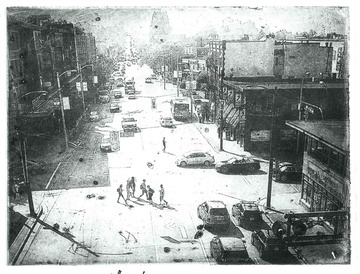 Antes de su llegada le comenté que los films de fotopolímero que conservaba en mi estudio tenían ya varios años y probablemente no estarían en condiciones óptimas. Bernhard me respondió que él traería material. Comenzamos trabajando con las marcas que yo tenía, Puretch y Riston, pero comprobamos que estaban en muy mal estado y ya no eran sensibles a la luz. Los films que Bernhard trajo —Mongoulux y Fototec— eran de fabricación más reciente, aunque también tenían dos o tres años. Hicimos pruebas con ellos, pero los resultados tampoco fueron satisfactorios. También probamos a realizar algunas fototransferencias con barniz para grabar BIG.