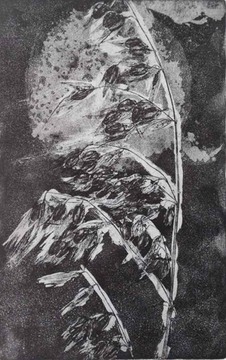 Aguatinta con azucar con barniz BIG sobre plancha de cobre por Rafael Rodríguez. Segundo estado.